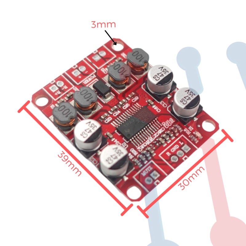 Anexamos todas las características eléctricas en nuestro archivo PDF. Este amplificador puede trabajar con carga mono con una potencia máxima de 30W con suministro de 16V