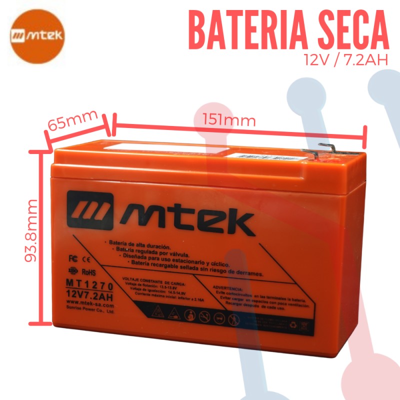 Batería mtek libre de mantenimiento con larga vida y buen desempeño en bajas y altas temperaturas. Tiene una baja tasa de auto-descarga es ideal para sistemas de energia solar y proyectos.