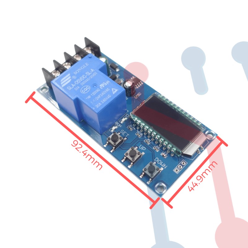 El Módulo de control de carga para baterías de 6 V a 60 V DC, con pantalla LCD, permite definir un voltaje máximo y mínimo para proteger la batería; soporta hasta 30 A de corriente de conmutación y es compatible con baterías de plomo‑ácido y litio.