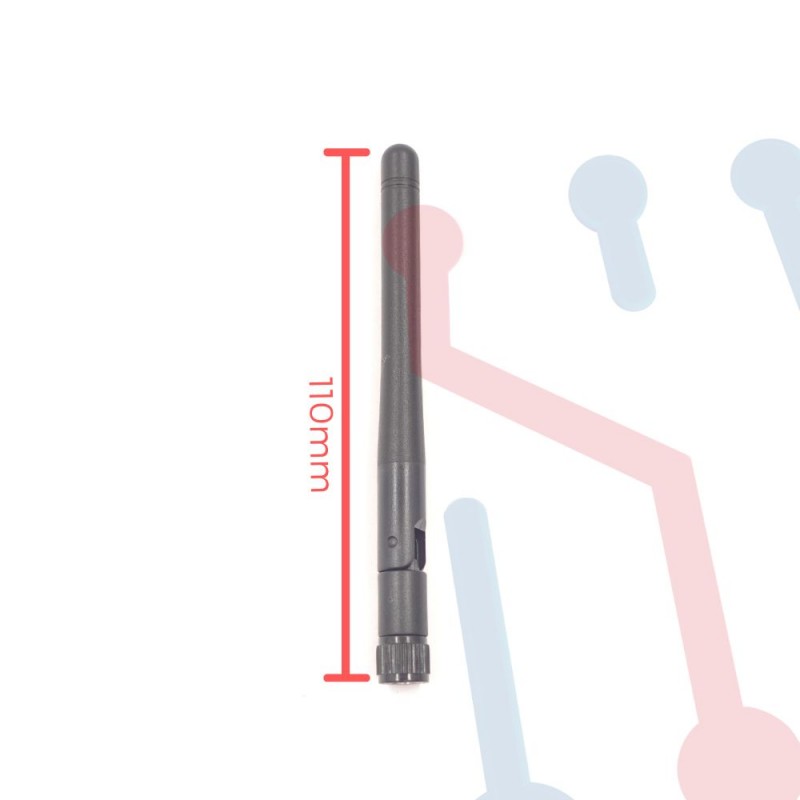 Antena de 433 MHz utilizada para comunicaciones inalámbricas en la banda UHF, comúnmente en sistemas industriales, telemetría, control remoto, sensores y enlaces de corto a medio alcance.