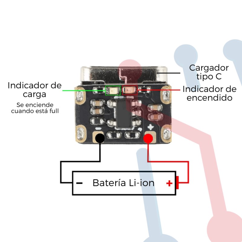 Mini módulo de carga para batería de litio 3.7V/4.2V 18650 con protección y puerto USB Tipo-C.