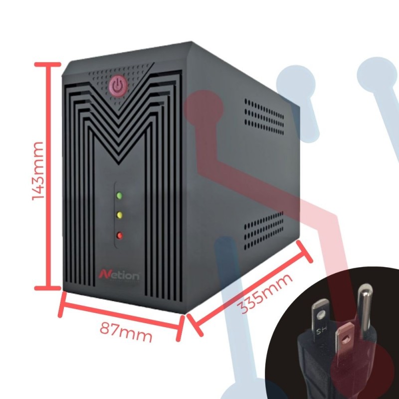 La UPS Interactiva NETION TF 600VA – Onda pura Modificada ofrece respaldo con batería, regulación automática de voltaje, protección contra picos y es compatible con generadores, todo en un diseño compacto y eficiente.