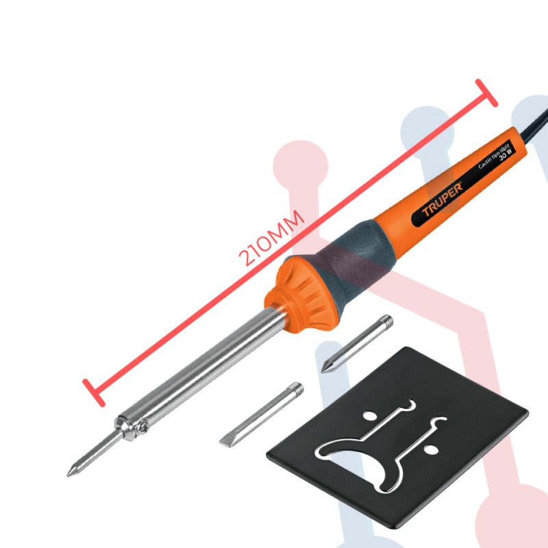 Cautín tipo lápiz Truper de 30 W, diseñado para trabajos ligeros de soldadura en electrónica y reparaciones básicas. Ofrece manejo cómodo y buen control.