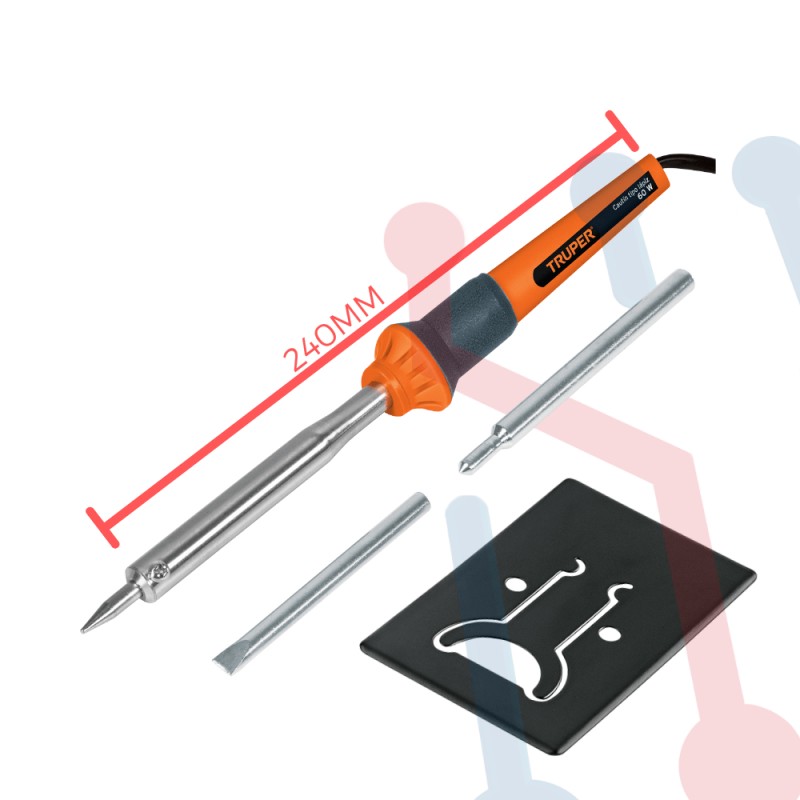 Cautín tipo lápiz Truper de 60W, diseñado para trabajo pesado de soldadura en electrónica y reparaciones. Ofrece manejo cómodo y buen control.