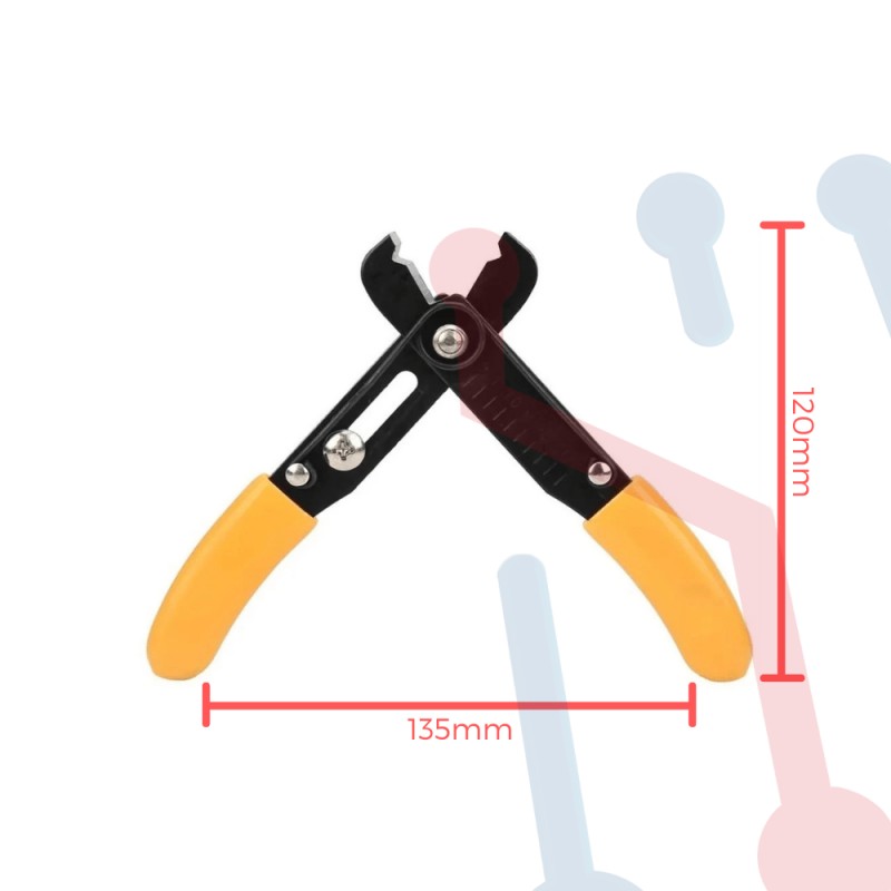 Herramienta multipropósito cortafrío y pelacables con tornillo ajustable y mango de goma antideslizante de alta calidad; ideal para proyectos de bricolaje y electrónica.