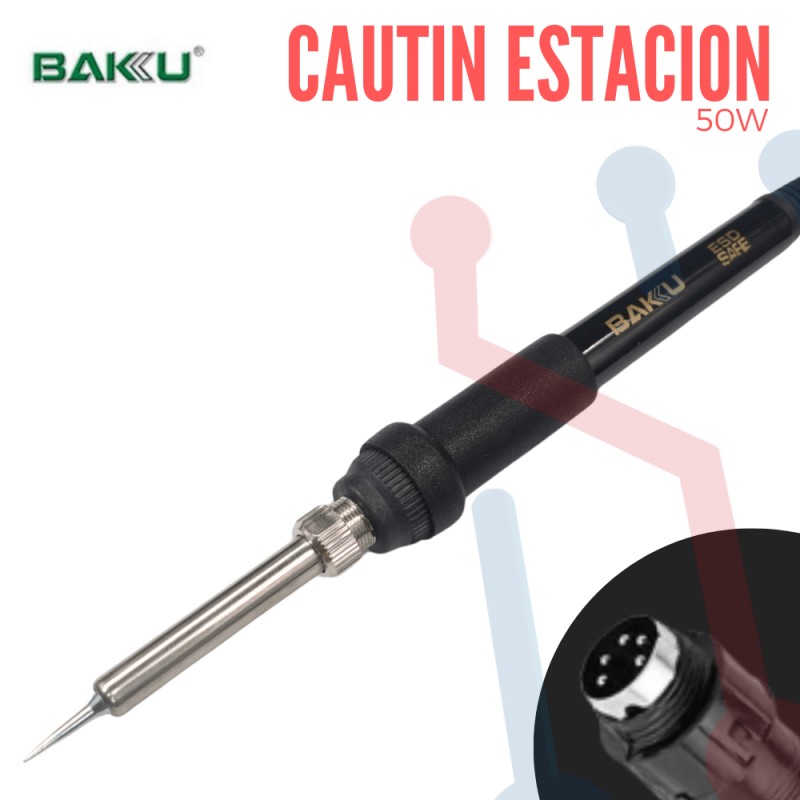Cautín de 50W marca BAKU con resistencia de Mica de alta calidad, punta de aleación de larga vida con rosca frontal y cuerpo en acero inoxidable para estaciones de soldadura.