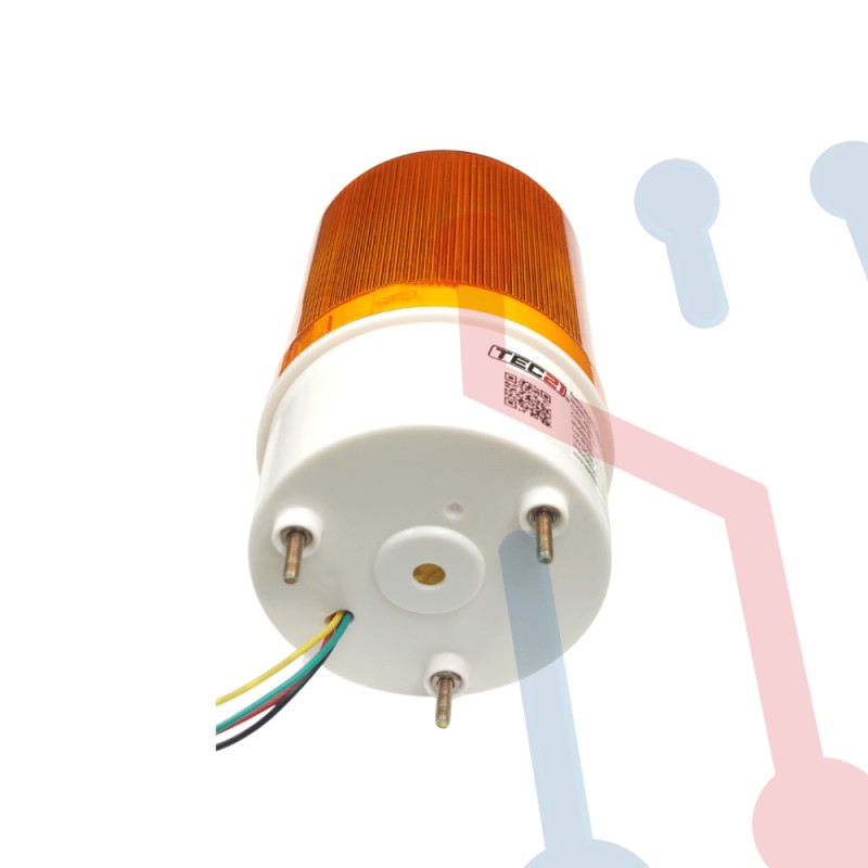 Baliza Amarilla de emergencia multivoltaje con efecto giratorio por LEDs, sin motor. Funciona con 12VDC, 24VDC, 110VAC y 220VAC. Se utiliza para señalización visual en maquinaria, paneles de control, vehículos de servicio y áreas de advertencia. Alta visibilidad, bajo mantenimiento.