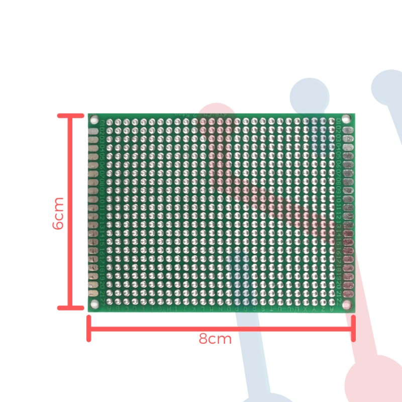 Lámina perforada de fibra de vidrio, doble cara y estañada. Sus puntos independientes permiten diseñar circuitos libremente. Compatible con la mayoría de componentes electrónicos. ¡Ideal para prototipos y proyectos electrónicos!